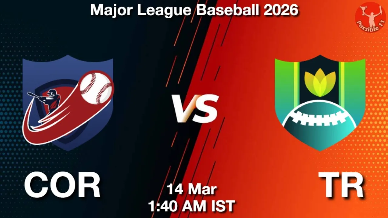 A-2, Dream11 Baseball team prediction for COR vs TR, Get expert fantasy tips, injury updates, small league safe teams, and grand league risky players from the Possible11 App.
