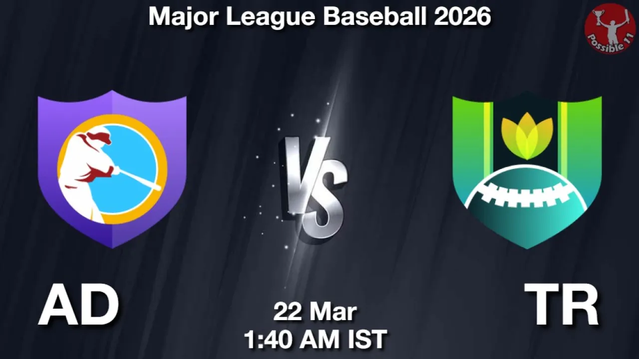 A-2, Dream11 Baseball team prediction for AD vs TR, Get expert fantasy tips, injury updates, small league safe teams, and grand league risky players from the Possible11 App.