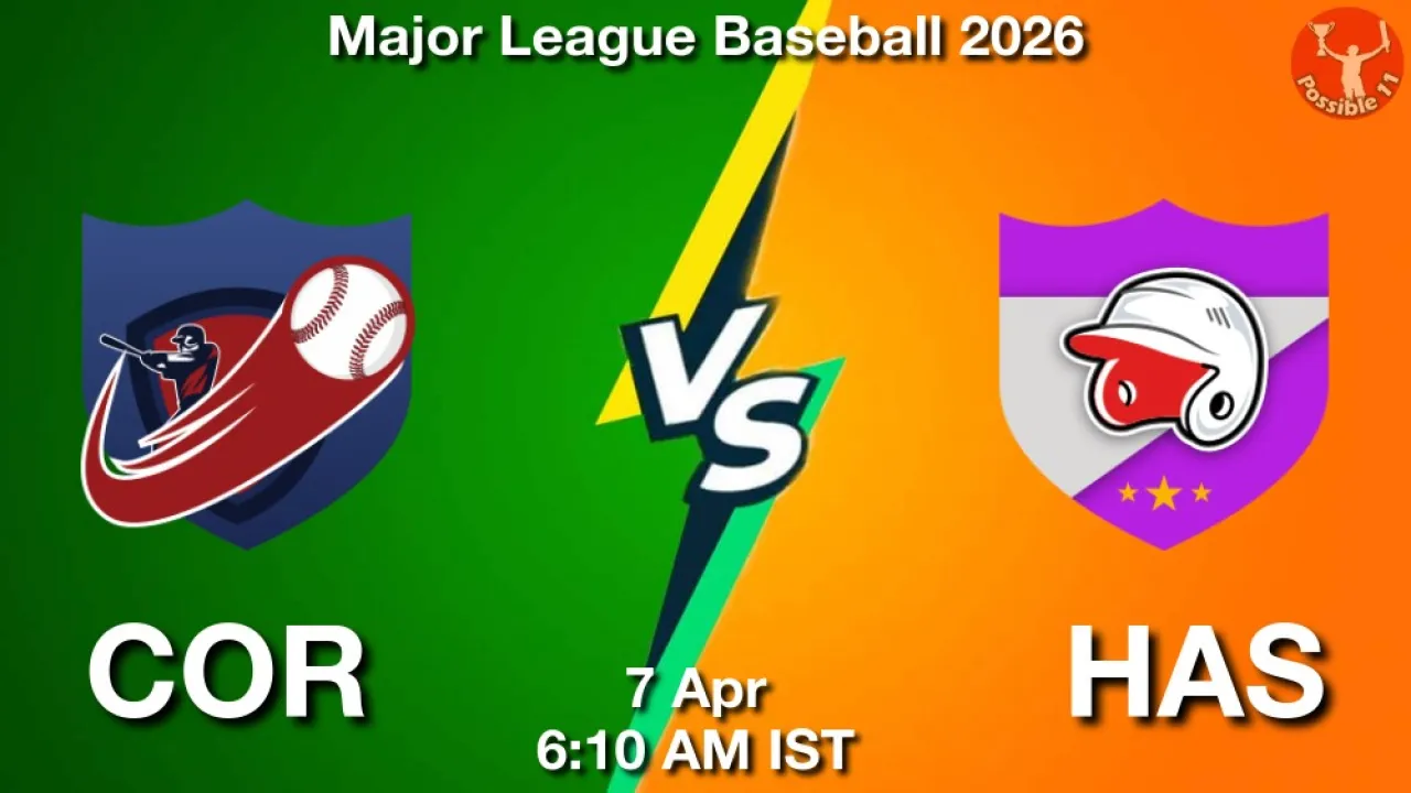 A-2, Dream11 Baseball team prediction for COR vs HAS, Get expert fantasy tips, injury updates, small league safe teams, and grand league risky players from the Possible11 App.