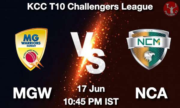 MGW vs NCA Match Preview: MG Warriors is set to take on Noor CM Academy in KCC T10 Challengers League on Saturday, 17 June 2023 at 10:45 PM IST.