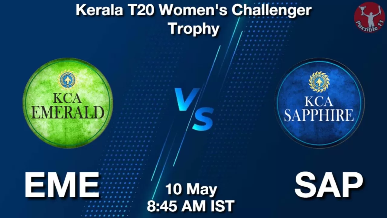 EME vs SAP Match Preview: Emerald will lock horns against Sapphire in Kerala T20 Womens Challenger Trophy on Saturday, 10 May 2025 at 08:45 AM IST.
