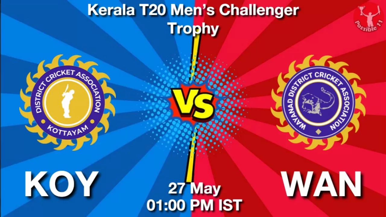 KOY vs WAN Match Preview: Kottayam will lock horns against DCA Wayanad in Kerala T20 Men’s Challenger Trophy on Tuesday, 27 May 2025 at 01:00 PM IST.