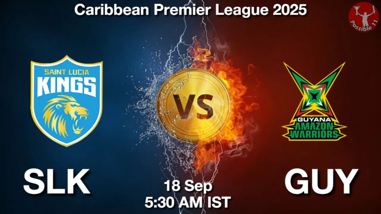 A-1, SLK vs GUY Dream11 Prediction, St Lucia Kings is set to take on Guyana Amazon Warriors at 2025-09-18 05:30:00 IST