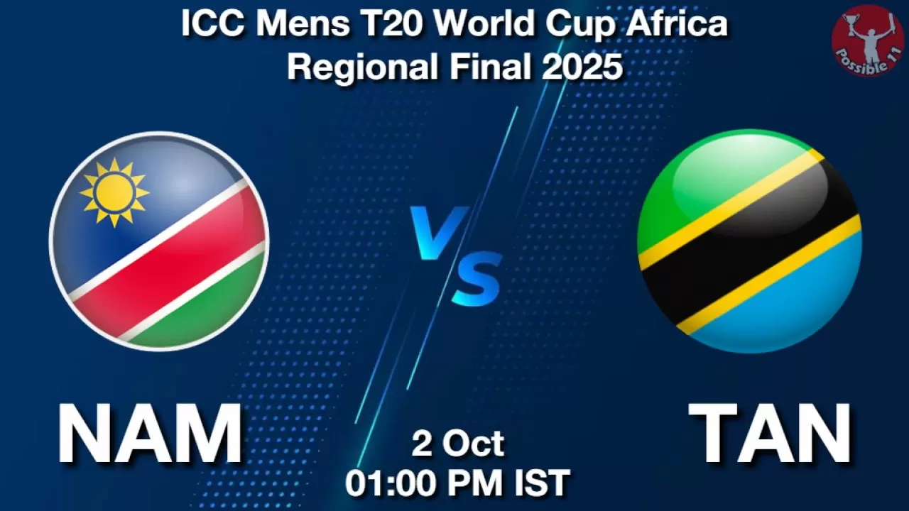NAM vs TAN Match Prediction, ICC Mens T20 World Cup Africa Regional Final 2025, Namibia vs Tanzania Match Preview, Probable Playing 11, Match winning Tips, Live Match Score, Pitch Report, Injury & Updates.