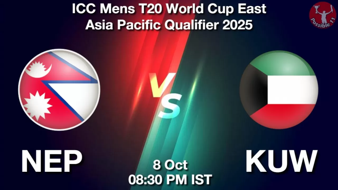 NEP vs KUW Match Preview: ICC Mens T20 World Cup East Asia Pacific Qualifier 2025 will see Nepal facing off against Kuwait on Wednesday, 08 October 2025 at 08:30 PM IST.
