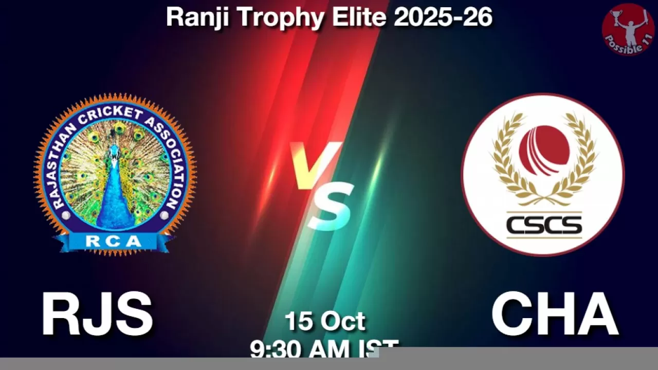 RJS vs CHA Match Prediction, Ranji Trophy Elite 2025-26, Rajasthan vs Chhattisgarh Match Preview, Probable Playing 11, Match winning Tips, Live Match Score, Pitch Report, Injury & Updates.