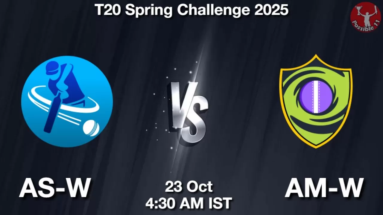 AS-W vs AM-W Match Preview: AS-W is set to take on ACT Meteors in T20 Spring Challenge 2025 on Thursday, 23 October 2025 at 04:30 AM IST.