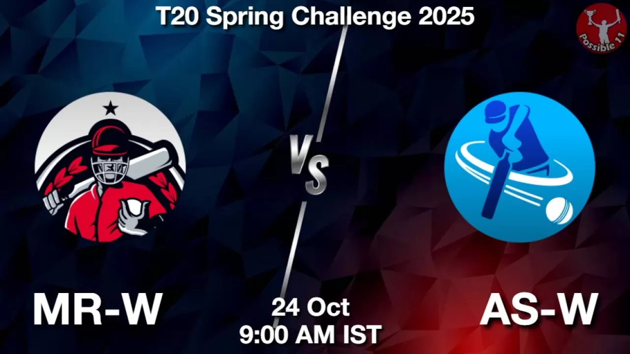 MR-W vs AS-W Match Preview: MR-W will lock horns against AS-W in T20 Spring Challenge 2025 on Friday, 24 October 2025 at 09:00 AM IST.