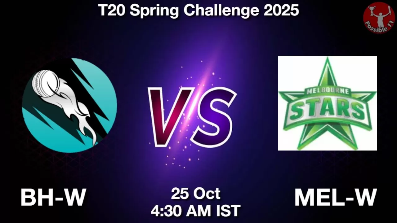 BH-W vs MEL-W Match Prediction, T20 Spring Challenge 2025, Brisbane Heat Women vs Melbourne Stars Women Match Preview, Probable Playing 11, Match winning Tips, Live Match Score, Pitch Report, Injury & Updates.