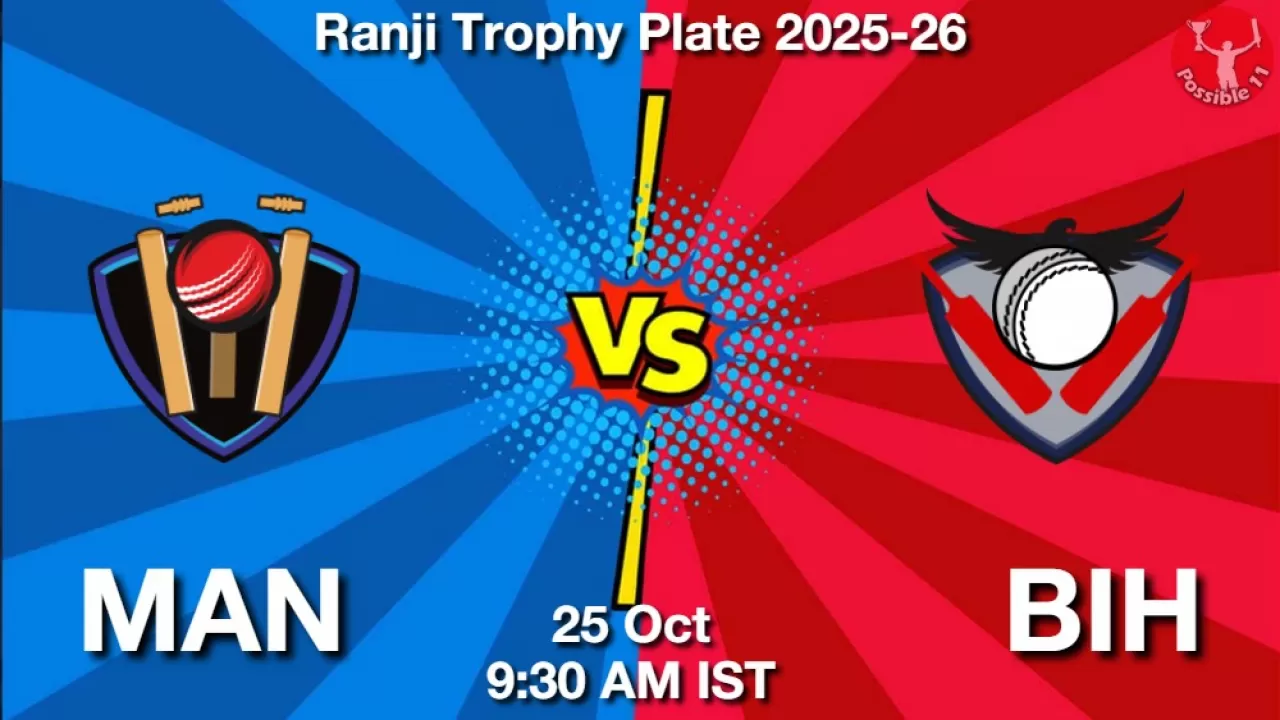 MAN vs BIH Match Prediction, Ranji Trophy Plate 2025-26, Manipur vs Bihar Match Preview, Probable Playing 11, Match winning Tips, Live Match Score, Pitch Report, Injury & Updates.