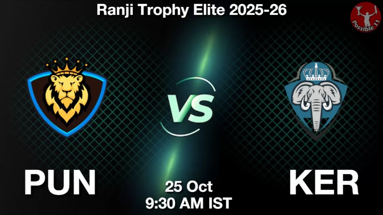 PUN vs KER Match Prediction, Ranji Trophy Elite 2025-26, Punjab vs Kerala Match Preview, Probable Playing 11, Match winning Tips, Live Match Score, Pitch Report, Injury & Updates.