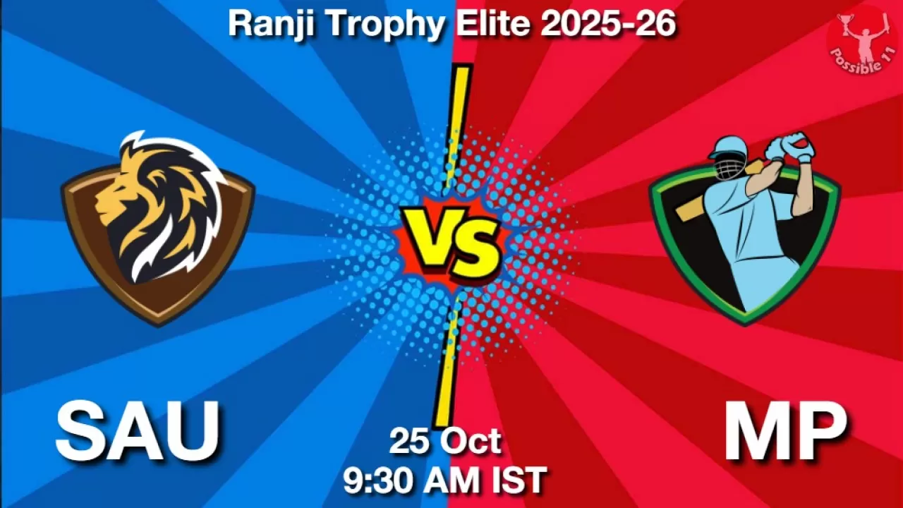 SAU vs MP Match Prediction, Ranji Trophy Elite 2025-26, Saurashtra vs Madhya Pradesh Match Preview, Probable Playing 11, Match winning Tips, Live Match Score, Pitch Report, Injury & Updates.