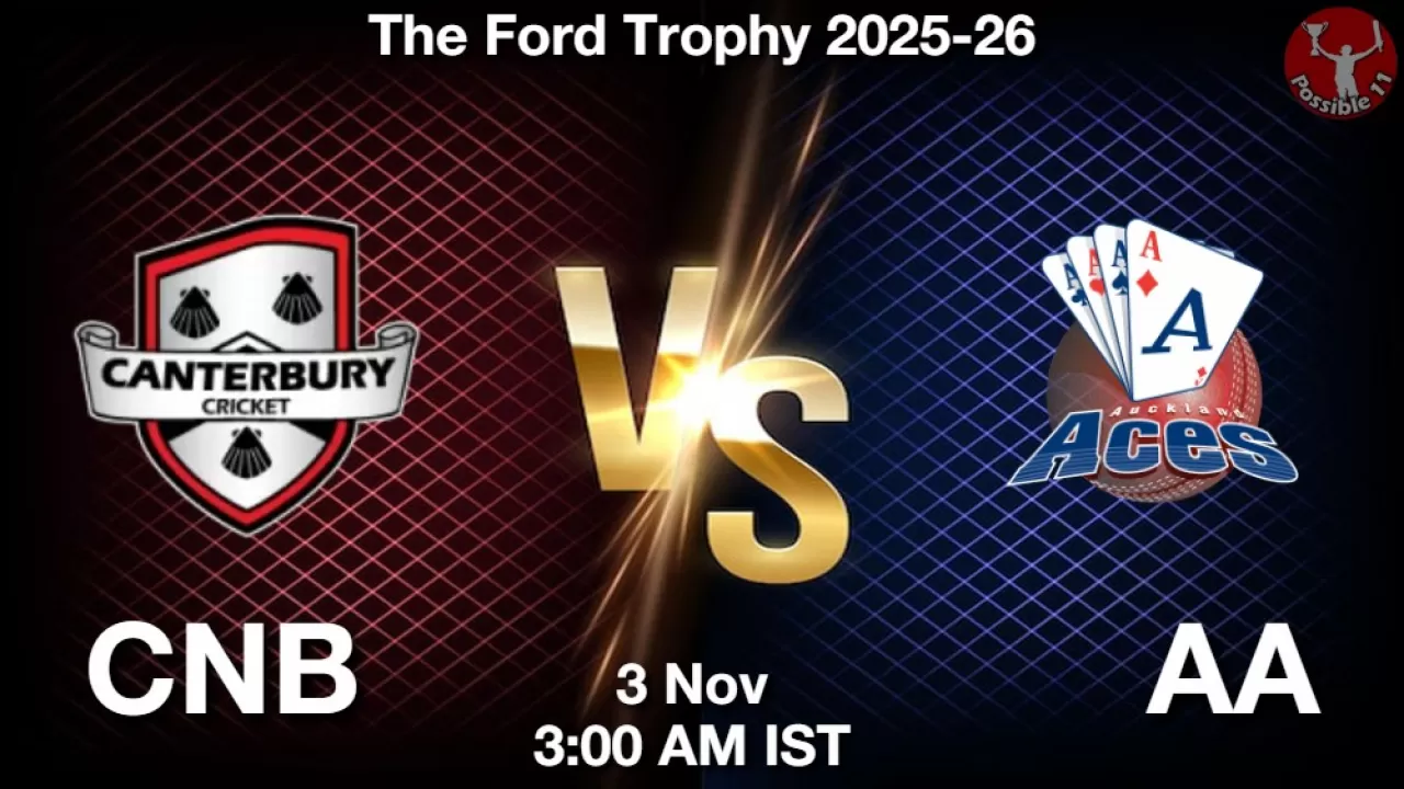 CNB vs AA Match Prediction, The Ford Trophy 2025-26, Canterbury vs Auckland Match Preview, Probable Playing 11, Match winning Tips, Live Match Score, Pitch Report, Injury & Updates.