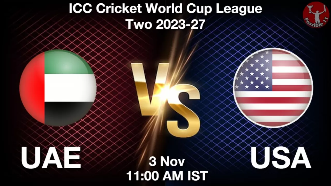 UAE vs USA Match Prediction, ICC Cricket World Cup League Two 2023-27, United Arab Emirates vs United States Match Preview, Probable Playing 11, Match winning Tips, Live Match Score, Pitch Report, Injury & Updates.