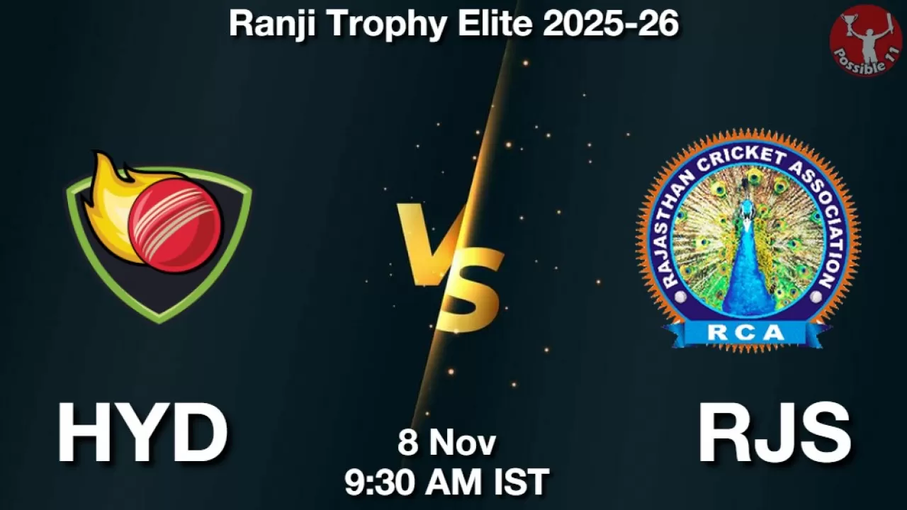 HYD vs RJS Match Prediction, Ranji Trophy Elite 2025-26, Hyderabad vs Rajasthan Match Preview, Probable Playing 11, Match winning Tips, Live Match Score, Pitch Report, Injury & Updates.