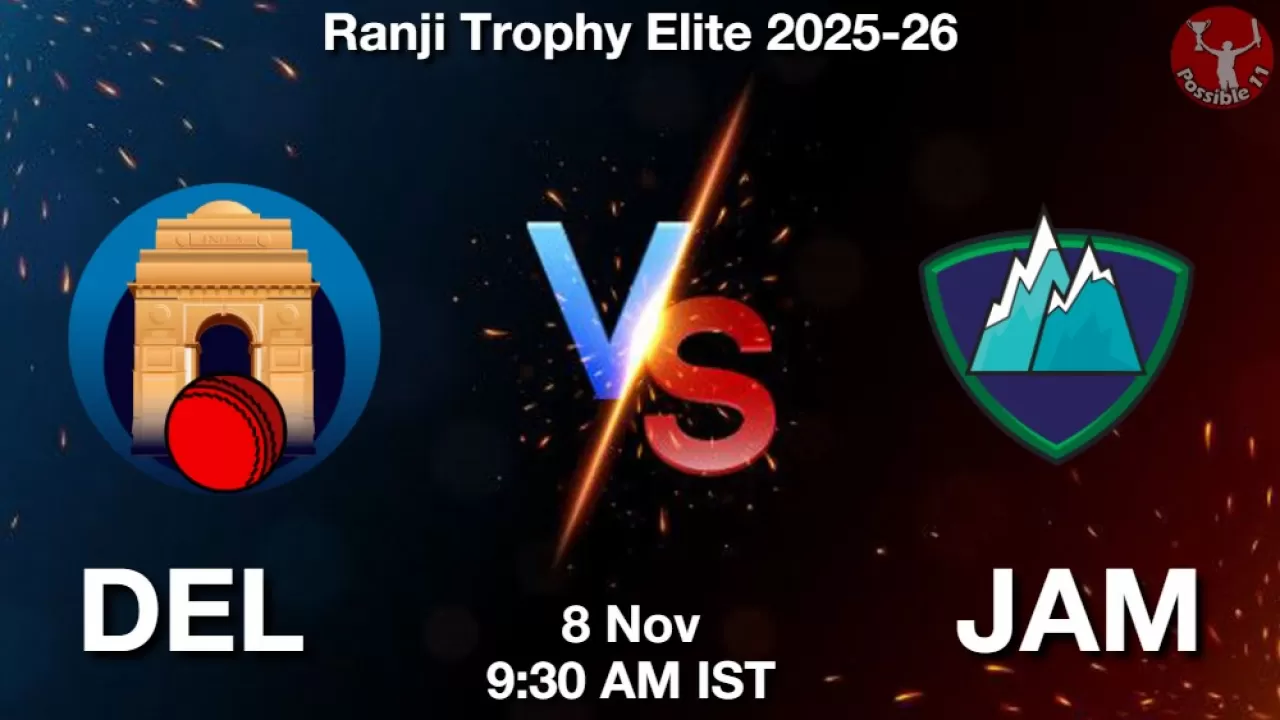 DEL vs JAM Match Prediction, Ranji Trophy Elite 2025-26, Delhi vs Jammu and kashmir Match Preview, Probable Playing 11, Match winning Tips, Live Match Score, Pitch Report, Injury & Updates.