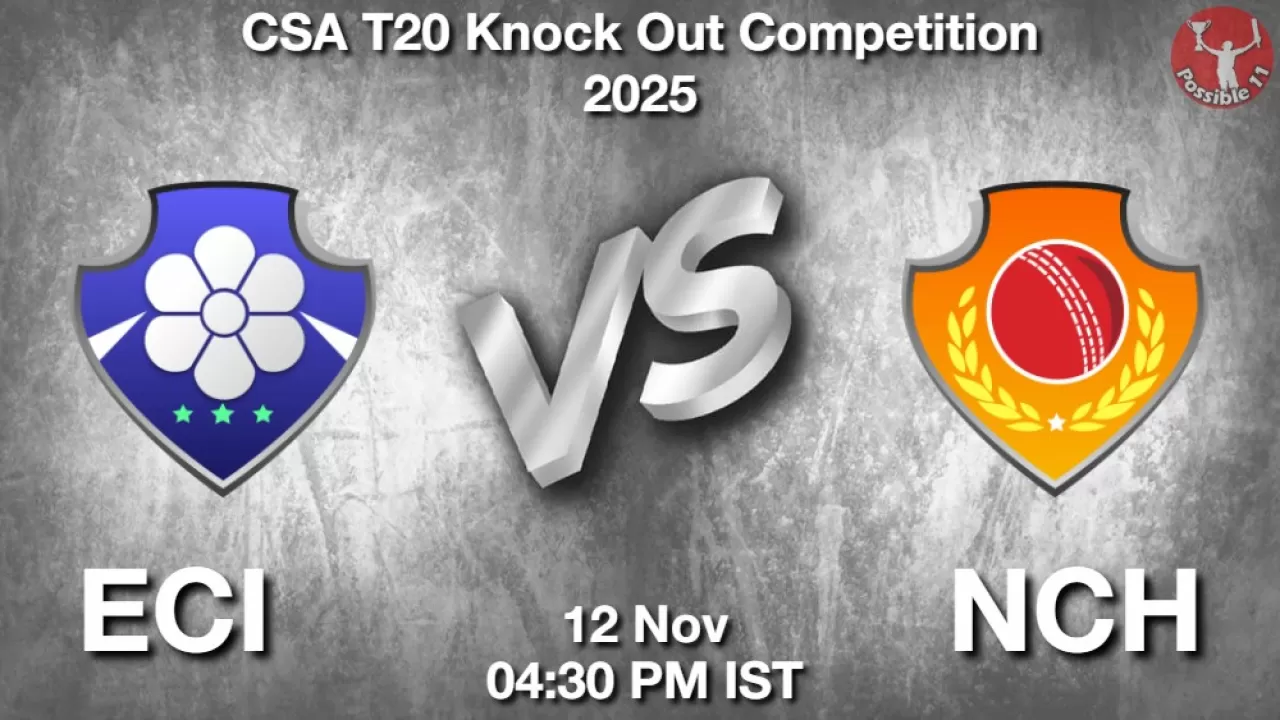ECI vs NCH Match Preview: CSA T20 Knock Out Competition 2025 will see ECI facing off against Northern Cape on Wednesday, 12 November 2025 at 04:30 PM IST.
