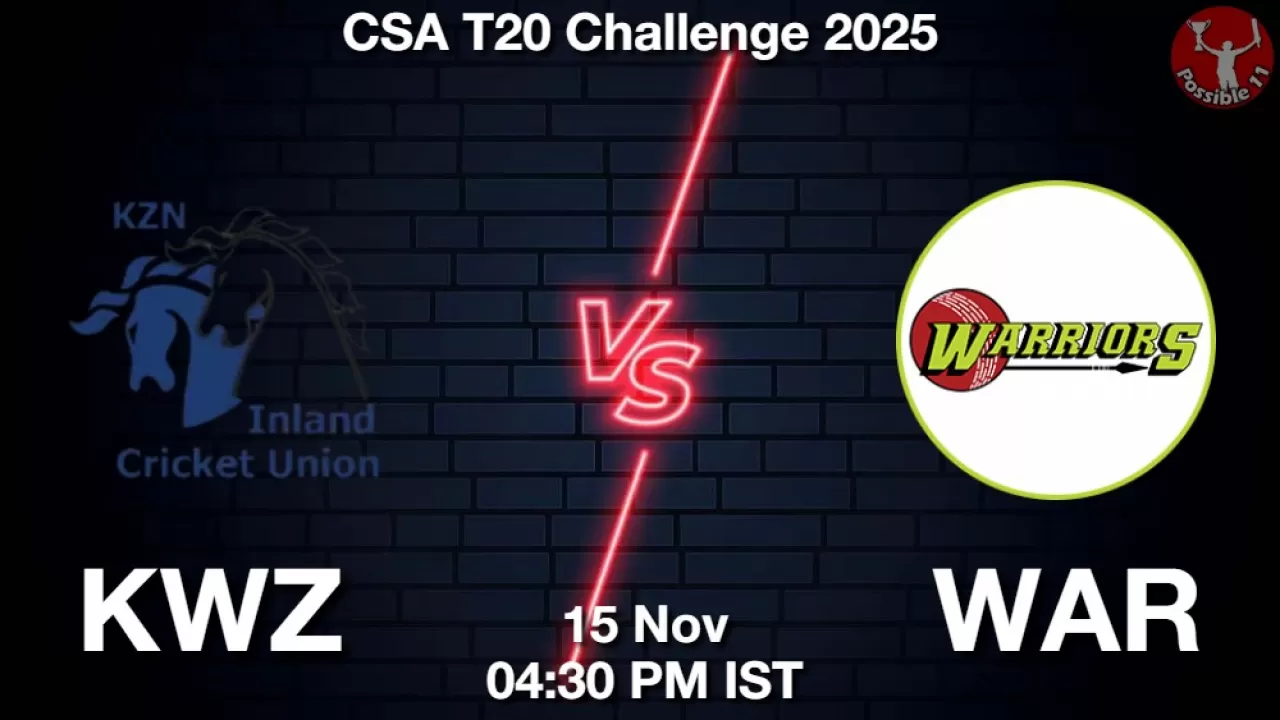 KWZ vs WAR Match Prediction, CSA T20 Challenge 2025, KwaZulu-Natal Inland vs Warriors Match Preview, Probable Playing 11, Match winning Tips, Live Match Score, Pitch Report, Injury & Updates.