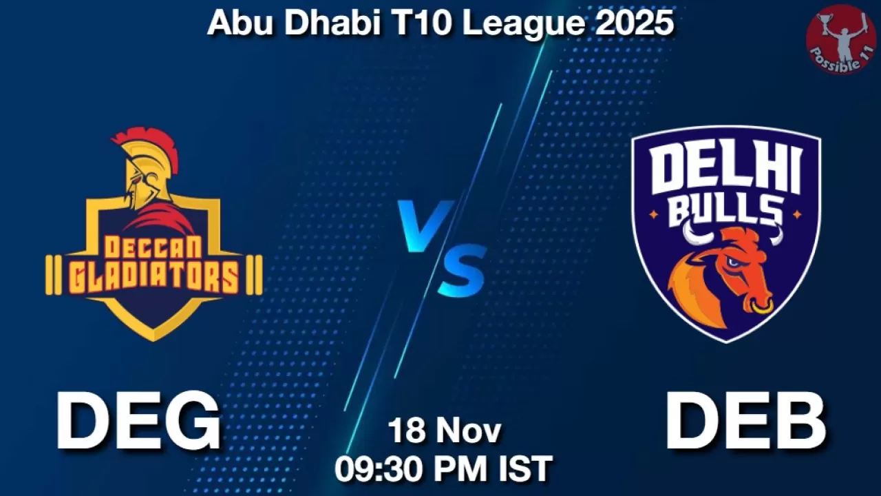 DEG vs DEB Match Prediction, Abu Dhabi T10 League 2025, Deccan Gladiators vs Delhi Bulls Match Preview, Probable Playing 11, Match winning Tips, Live Match Score, Pitch Report, Injury & Updates.