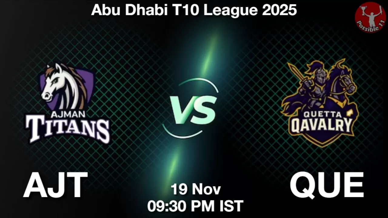 AJT vs QUE Match Preview: Ajman Titans will lock horns against Quetta Qavalry in Abu Dhabi T10 League 2025 on Wednesday, 19 November 2025 at 09:30 PM IST.