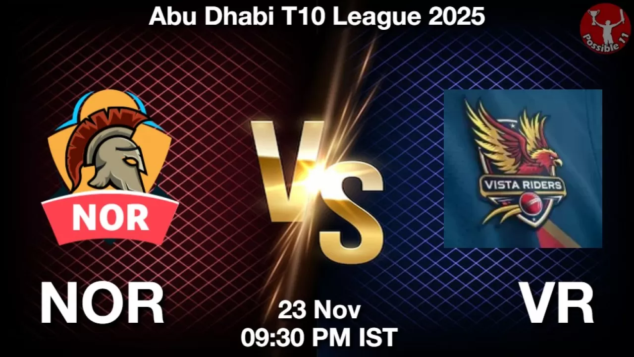 NOR vs VR Match Preview: Northern Warriors will take on Vista Riders in Abu Dhabi T10 League 2025 on Sunday, 23 November 2025 at 09:30 PM IST at Sheikh Zayed Stadium, Abu Dhabi, UAE.