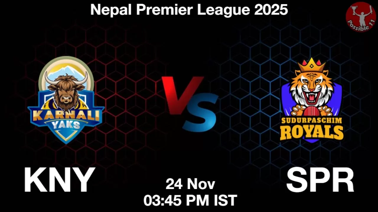 KNY vs SPR Match Prediction, Nepal Premier League 2025, Karnali Yaks vs Sudur Paschim Royals Match Preview, Probable Playing 11, Match winning Tips, Live Match Score, Pitch Report, Injury & Updates.