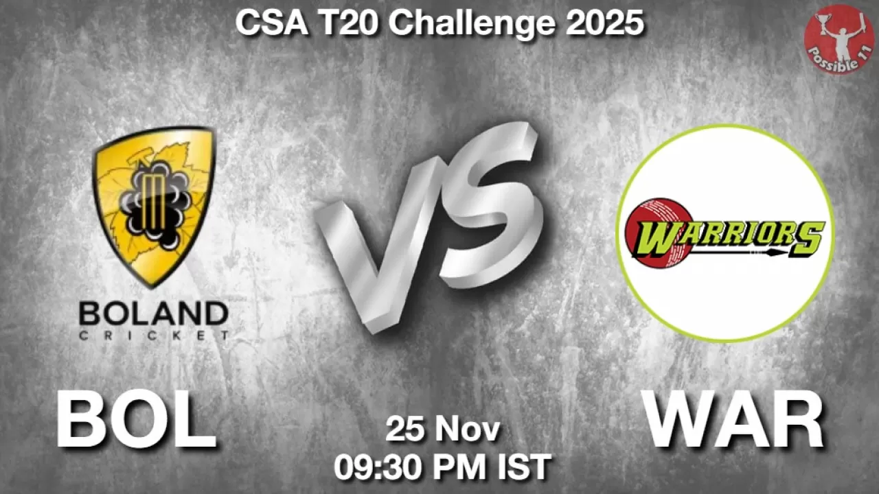 BOL vs WAR Match Preview: CSA T20 Challenge 2025 will see Boland facing off against Warriors on Tuesday, 25 November 2025 at 09:30 PM IST.