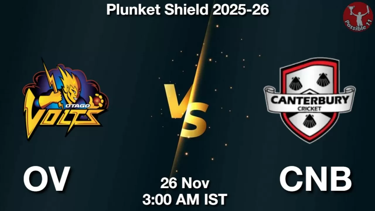 OV vs CNB Match Prediction, Plunket Shield 2025-26, Otago vs Canterbury Match Preview, Probable Playing 11, Match winning Tips, Live Match Score, Pitch Report, Injury & Updates.