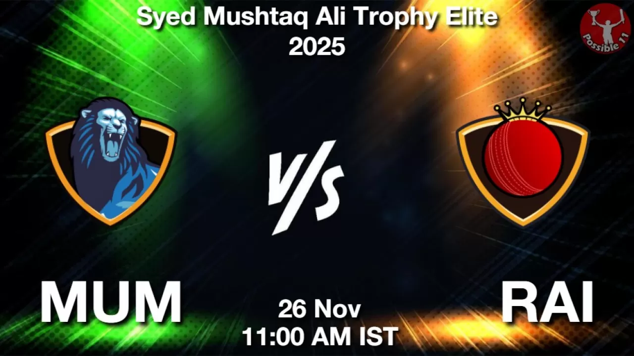 MUM vs RAI Match Prediction, Syed Mushtaq Ali Trophy Elite 2025, Mumbai vs Railways Match Preview, Probable Playing 11, Match winning Tips, Live Match Score, Pitch Report, Injury & Updates.