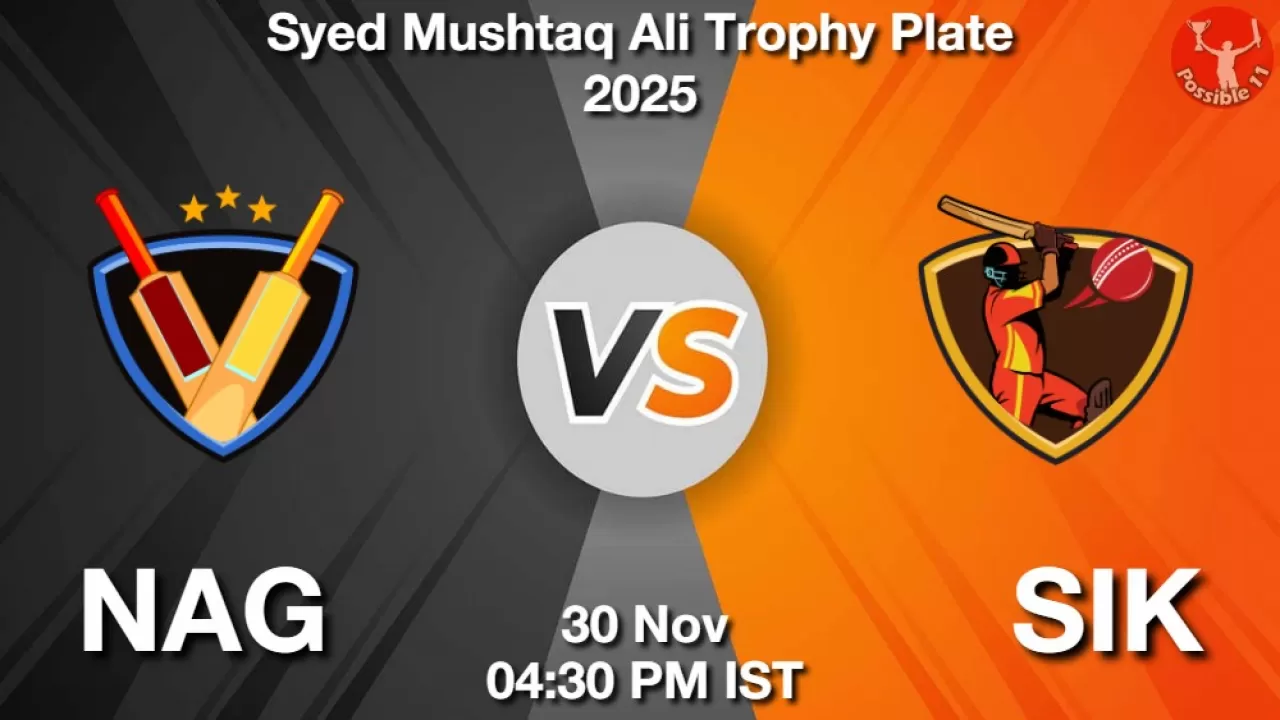 NAG vs SIK Match Prediction, Syed Mushtaq Ali Trophy Plate 2025, Nagaland vs Sikkim Match Preview, Probable Playing 11, Match winning Tips, Live Match Score, Pitch Report, Injury & Updates.
