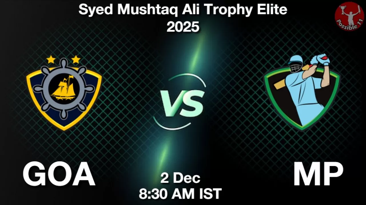 GOA vs MP Match Prediction, Syed Mushtaq Ali Trophy Elite 2025, Goa vs Madhya Pradesh Match Preview, Probable Playing 11, Match winning Tips, Live Match Score, Pitch Report, Injury & Updates.
