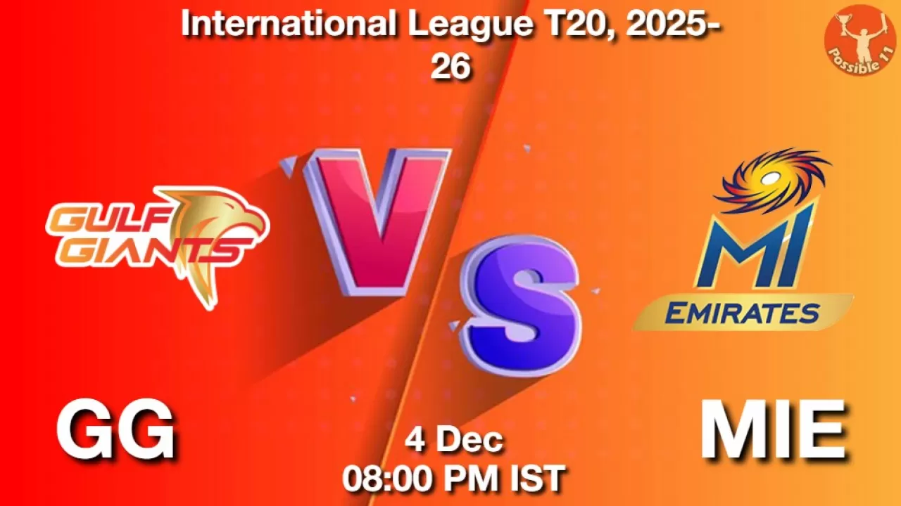 GG vs MIE Match Preview: Gulf Giants will take on MI Emirates in International League T20, 2025-26 on Thursday, 04 December 2025 at 08:00 PM IST.