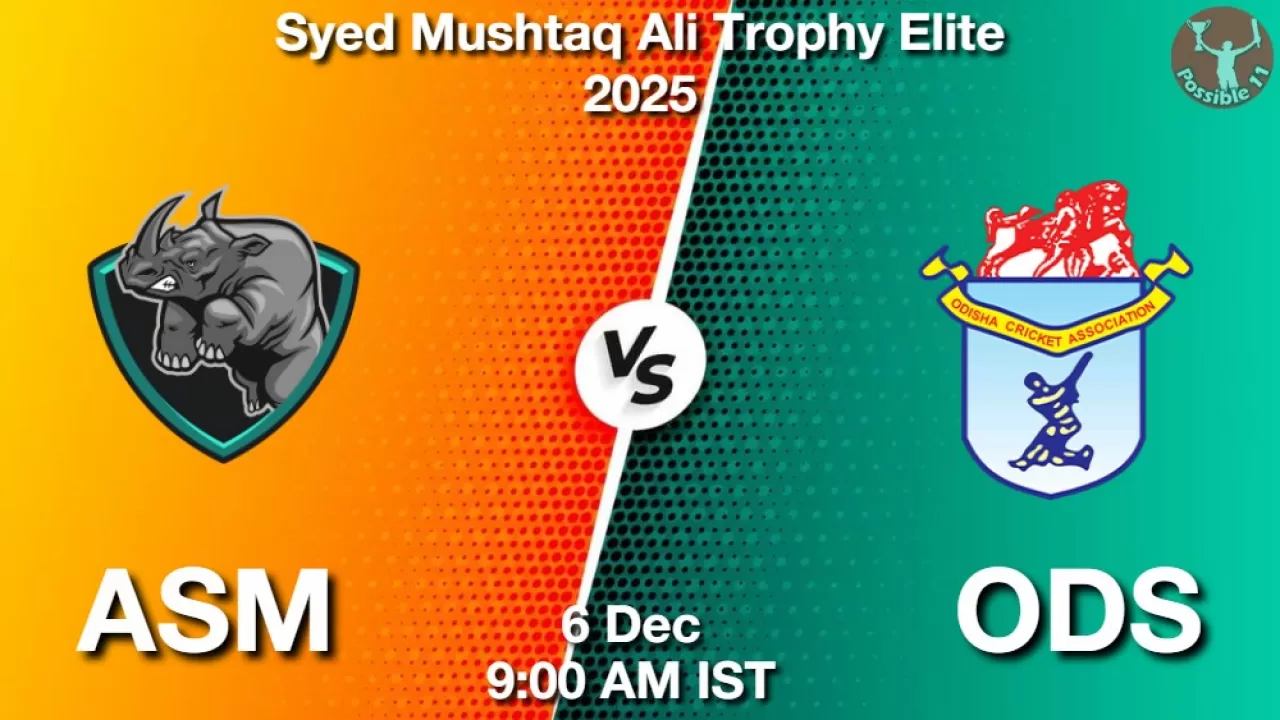 ASM vs ODS Match Prediction, Syed Mushtaq Ali Trophy Elite 2025, Assam vs Odisha Match Preview, Probable Playing 11, Match winning Tips, Live Match Score, Pitch Report, Injury & Updates.