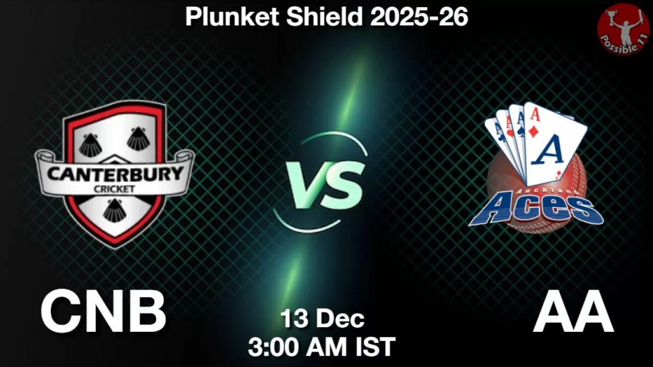 CNB vs AA Match Prediction, Plunket Shield 2025-26, Canterbury vs Auckland Match Preview, Probable Playing 11, Match winning Tips, Live Match Score, Pitch Report, Injury & Updates.