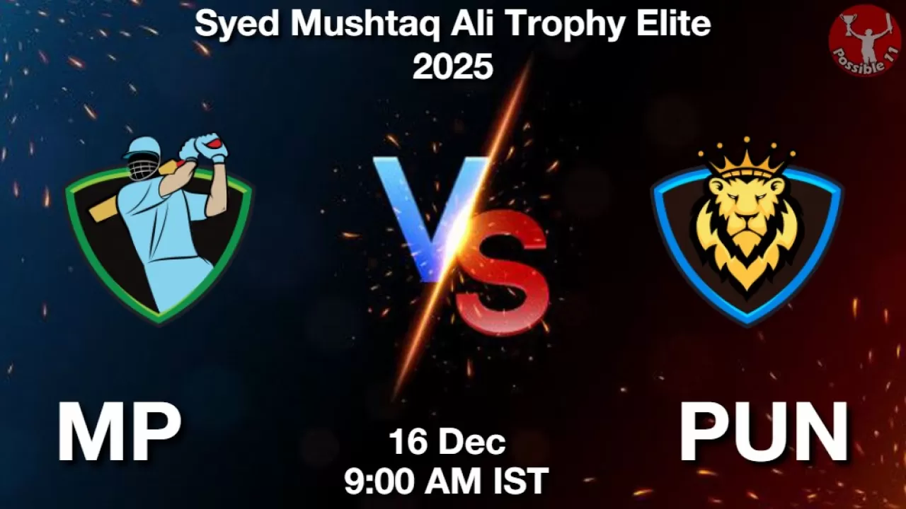 MP vs PUN Match Prediction, Syed Mushtaq Ali Trophy Elite 2025, Madhya Pradesh vs Punjab Match Preview, Probable Playing 11, Match winning Tips, Live Match Score, Pitch Report, Injury & Updates.