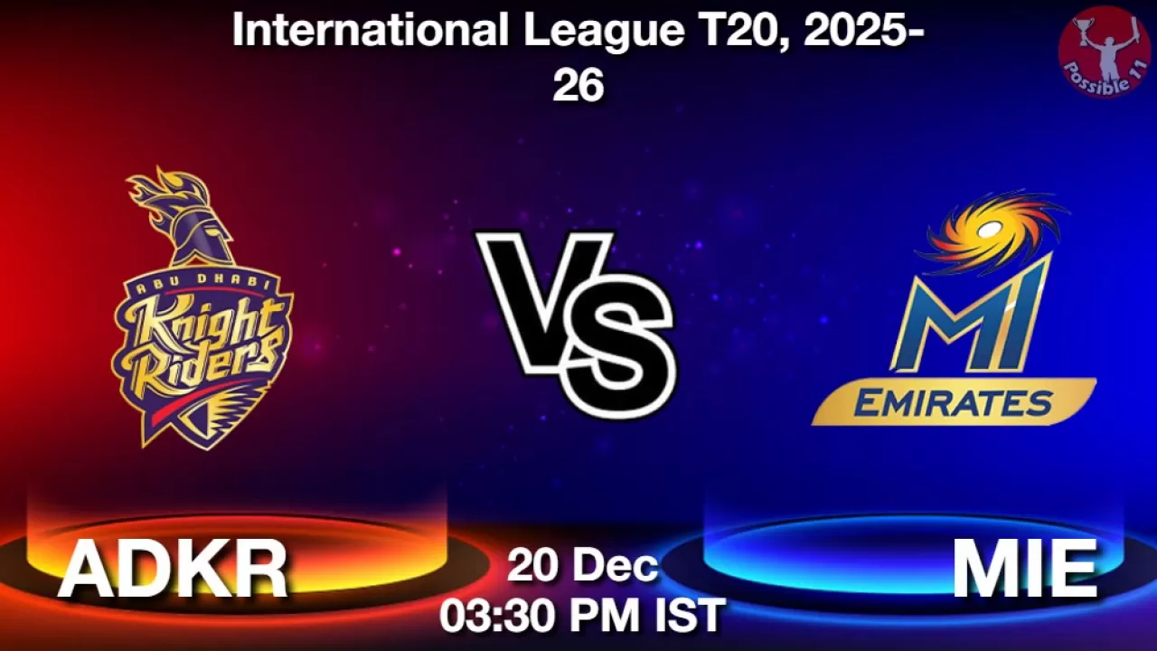 ADKR vs MIE Match Preview: ADKR is set to take on MI Emirates in International League T20, 2025-26 on Saturday, 20 December 2025 at 03:30 PM IST.