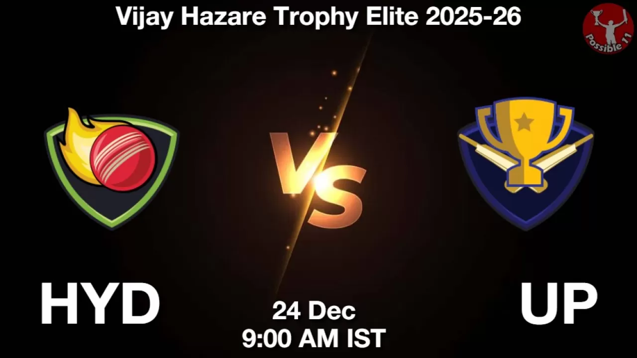 HYD vs UP Match Prediction, Vijay Hazare Trophy Elite 2025-26, Hyderabad vs Uttar Pradesh Match Preview, Probable Playing 11, Match winning Tips, Live Match Score, Pitch Report, Injury & Updates.