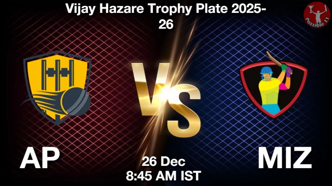 AP vs MIZ Match Prediction, Vijay Hazare Trophy Plate 2025-26, Arunachal Pradesh vs Mizoram Match Preview, Probable Playing 11, Match winning Tips, Live Match Score, Pitch Report, Injury & Updates.