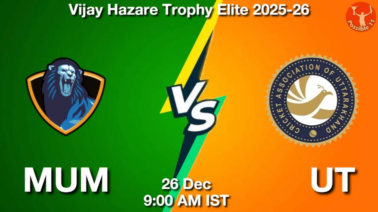 MUM vs UT Match Prediction, Vijay Hazare Trophy Elite 2025-26, Mumbai vs Uttarakhand Match Preview, Probable Playing 11, Match winning Tips, Live Match Score, Pitch Report, Injury & Updates.