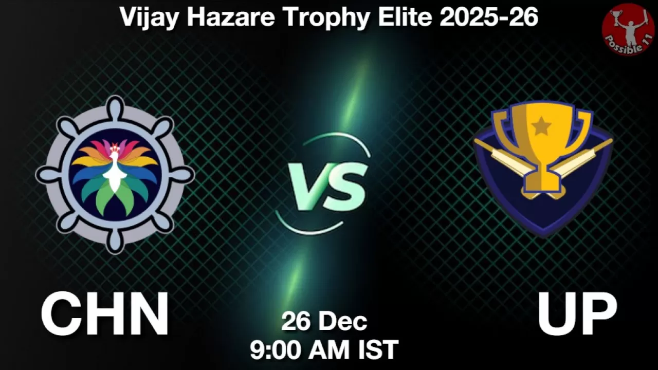 CHN vs UP Match Preview: Chandigarh will take on Uttar Pradesh in Vijay Hazare Trophy Elite 2025-26 on Friday, 26 December 2025 at 09:00 AM IST.