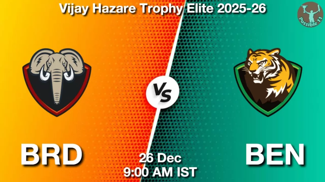 BRD vs BEN Match Prediction, Vijay Hazare Trophy Elite 2025-26, Baroda vs Bengal Match Preview, Probable Playing 11, Match winning Tips, Live Match Score, Pitch Report, Injury & Updates.