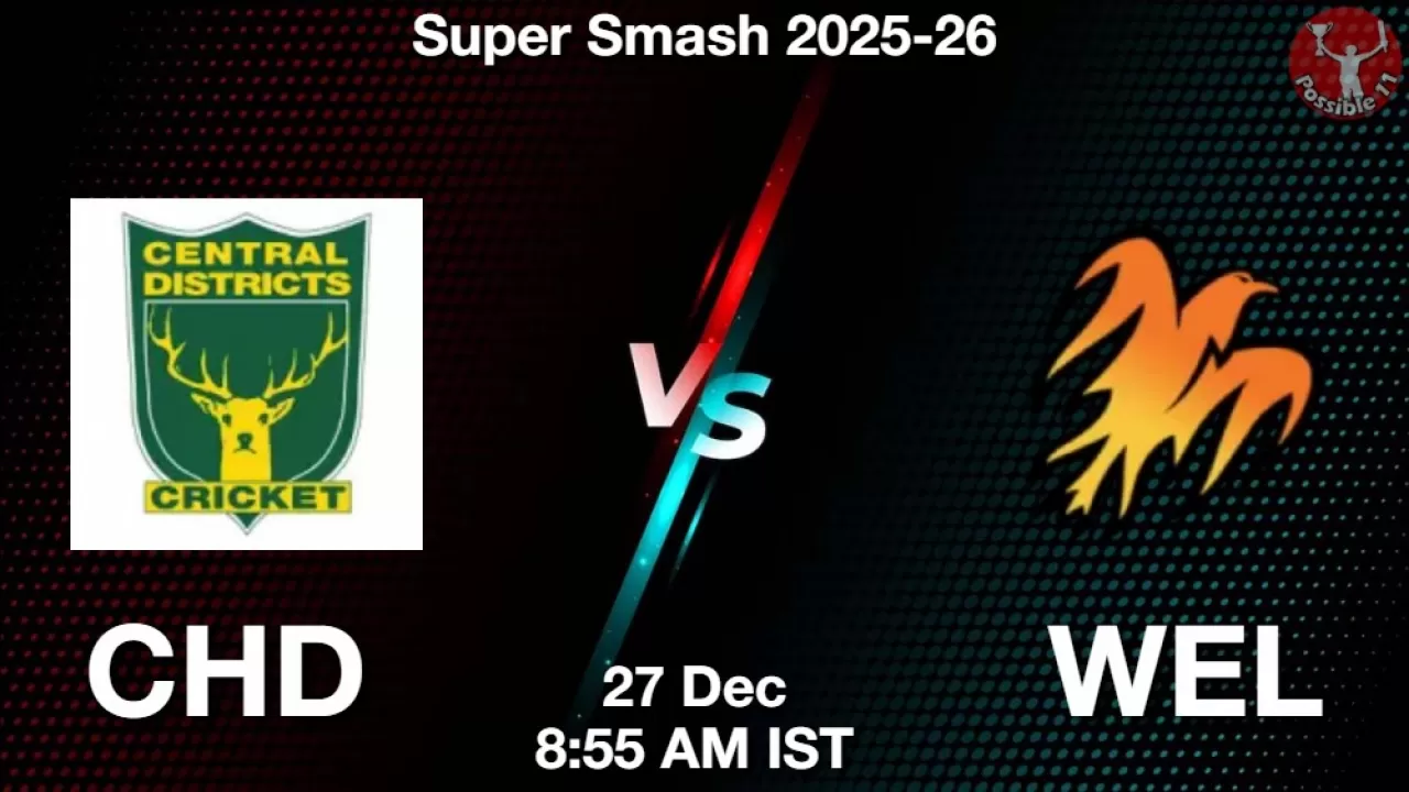 CHD vs WEL Match Prediction, Super Smash 2025-26, Central Districts vs Wellington Match Preview, Probable Playing 11, Match winning Tips, Live Match Score, Pitch Report, Injury & Updates.