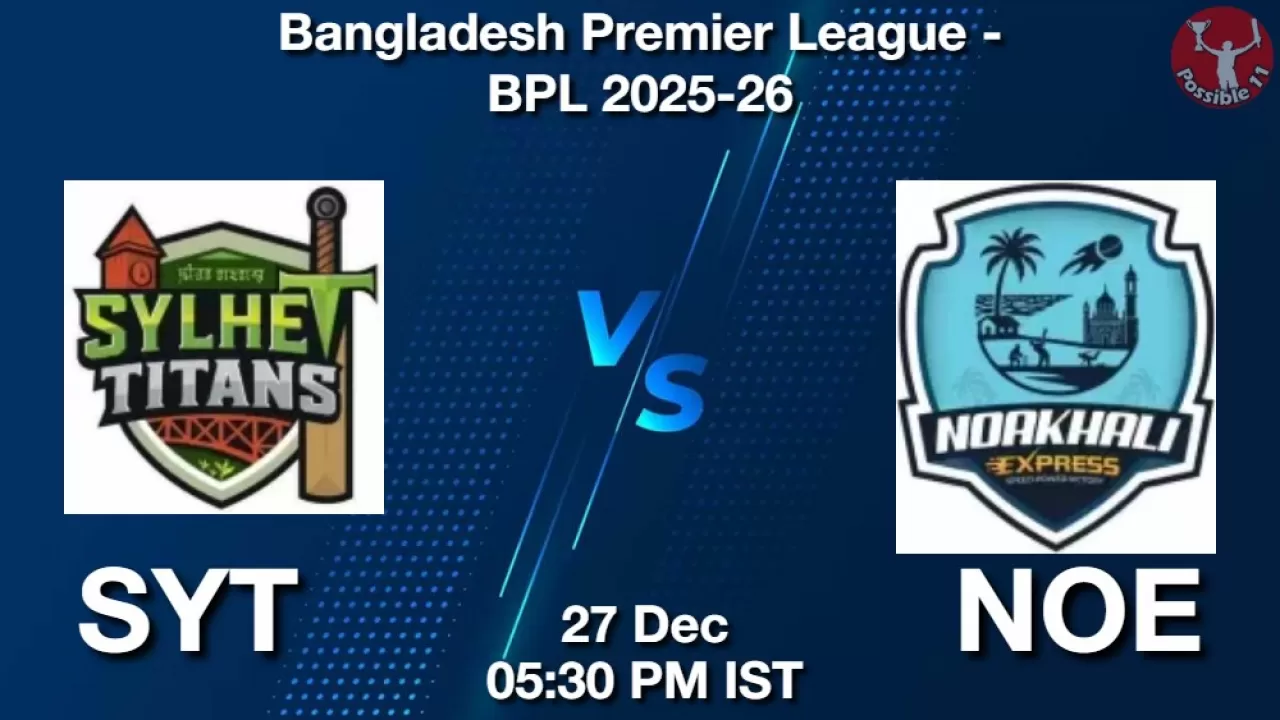 SYT vs NKE Match Prediction, Bangladesh Premier League - BPL 2025-26, Sylhet Titans vs Noakhali Express Match Preview, Probable Playing 11, Match winning Tips, Live Match Score, Pitch Report, Injury & Updates.