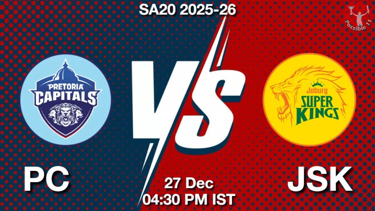 PC vs JSK Match Prediction, SA20 2025-26, Pretoria Capitals vs Joburg Super Kings Match Preview, Probable Playing 11, Match winning Tips, Live Match Score, Pitch Report, Injury & Updates.