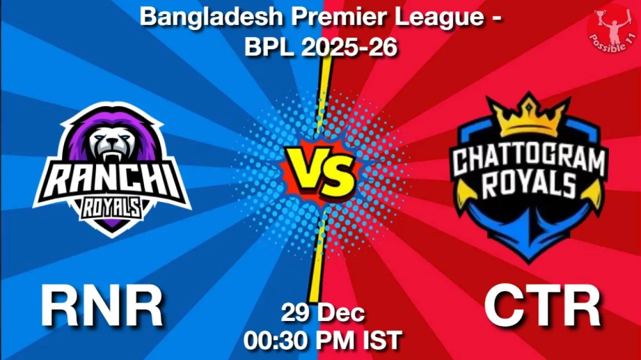 RNR vs CTR Match Preview: Bangladesh Premier League - BPL 2025-26 will see Rangpur Riders facing off against Chattogram Royals on Monday, 29 December 2025 at 12:30 PM IST.