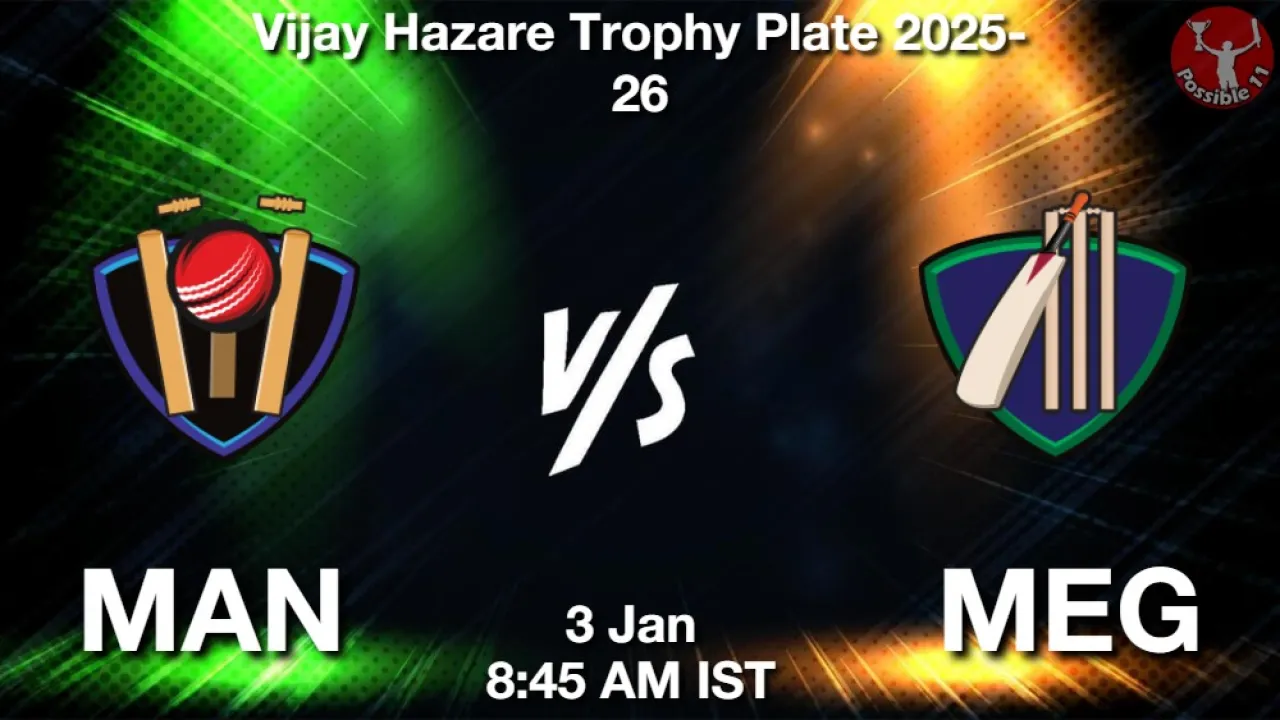 MAN vs MEG Vijay Hazare Trophy Plate 2025-26 Match Expert Advice: Langlonyamba Meitan-Keishangbam will be a top multiplier choice for the small leagues. Kangabam Priyojit Singh will be a decent choice for the captaincy in the grand leagues.