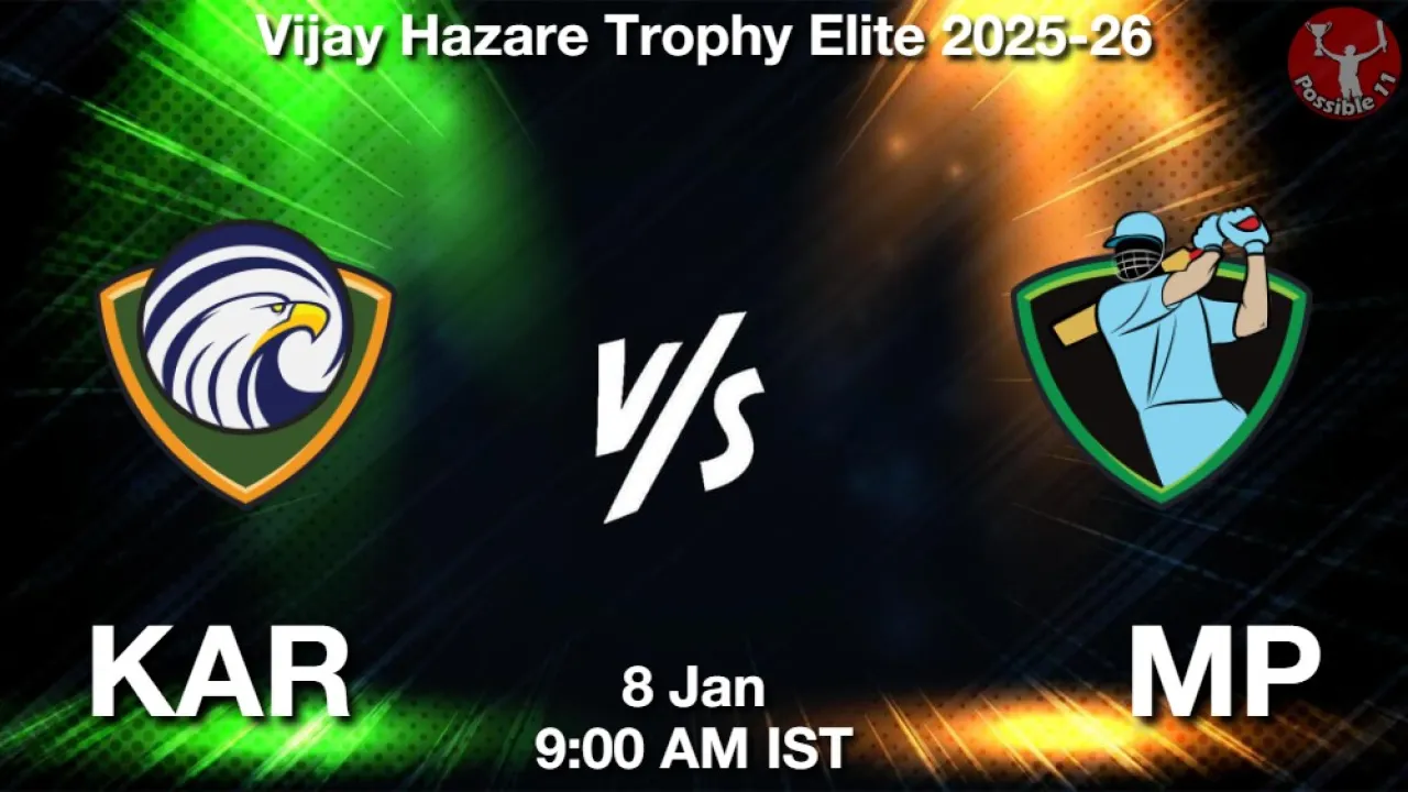 KAR vs MP Match Prediction, Vijay Hazare Trophy Elite 2025-26, Karnataka vs Madhya Pradesh Match Preview, Probable Playing 11, Match winning Tips, Live Match Score, Pitch Report, Injury & Updates.