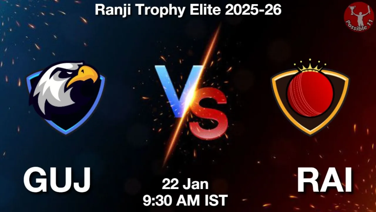 GUJ vs RAI Match Preview: Gujarat is set to take on Railways in Ranji Trophy Elite 2025-26 on Thursday, 22 January 2026 at 07:30 PM IST.