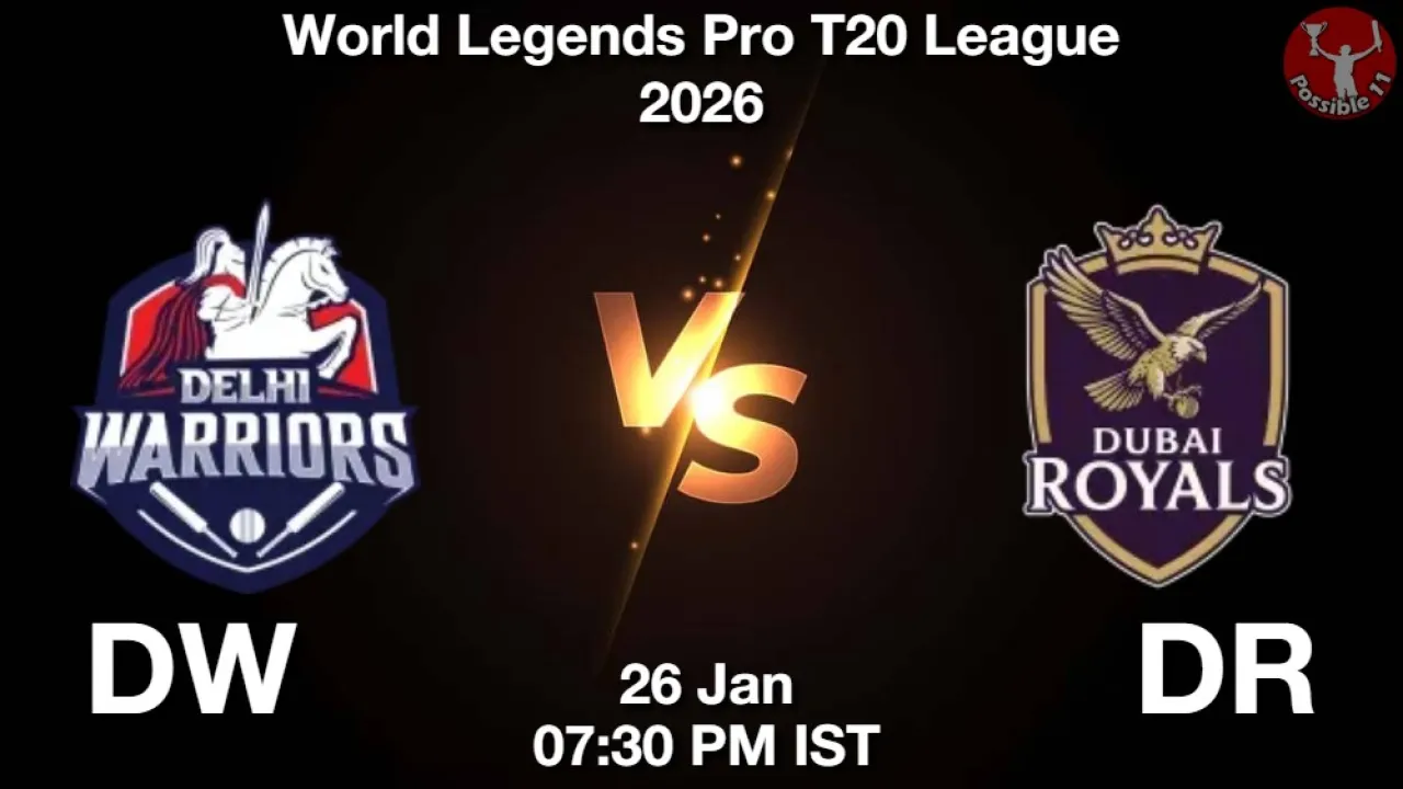 DW vs DR Match Preview: Delhi Warriors will lock horns against Dubai Royals in World Legends Pro T20 League 2026 on Monday, 26 January 2026 at 07:30 PM IST.