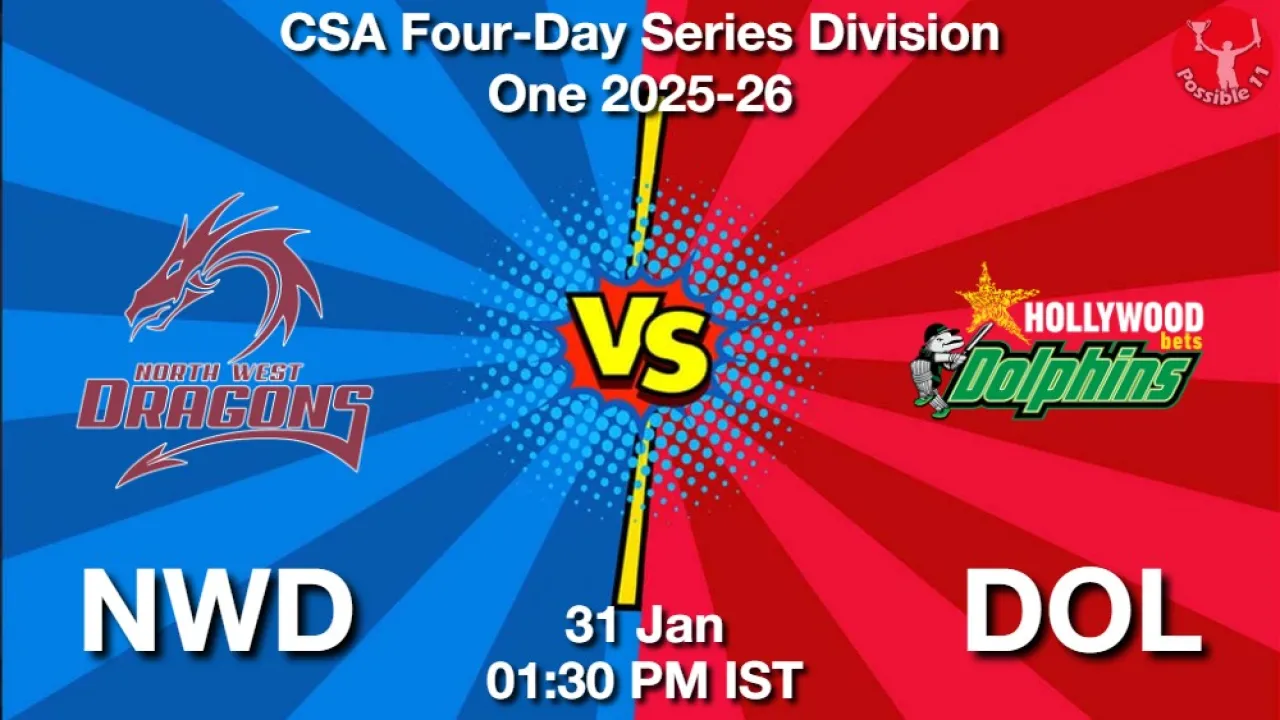 NWD vs DOL Match Preview: North West Dragons is set to take on Dolphins in CSA Four-Day Series Division One 2025-26 on Saturday, 31 January 2026 at 01:30 PM IST.